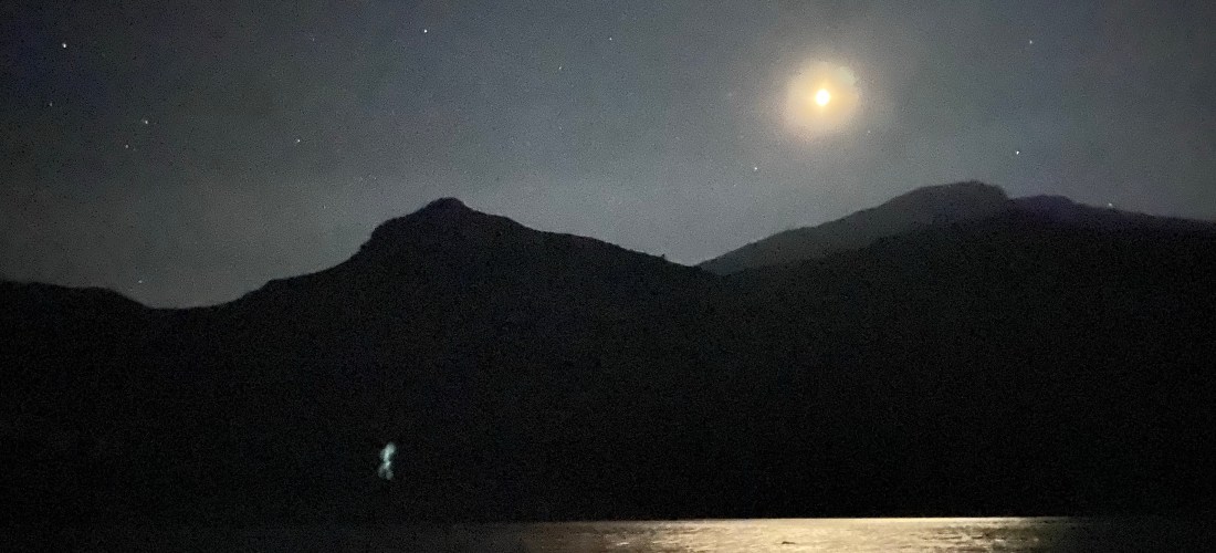 The full moon is hanging